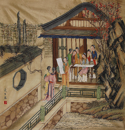 726 文生,1953年生于北京,天津美术学院毕业,主攻工笔人物画。师从王美芳先生。文生作品既有写实的造型功力,又有写意迁想的浪漫神采,在强 调真实、细致的同时,更有文雅的内心气韵,笔墨间洋溢着情趣。浅条中蕴涵着深沉。主要获奖作品:1994年《荷塘倩影》入选全国美术作品展并获优秀奖。1998年《春暖》入选中亨杯全国书画大展获银奖。2005年《繁华》获全国美展优秀奖。