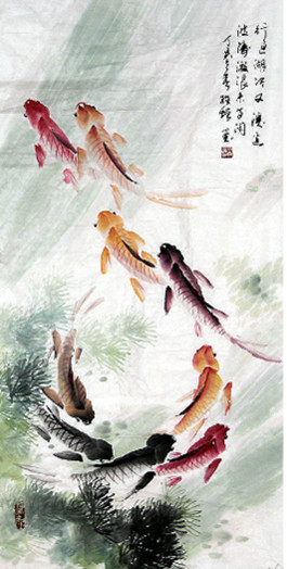 作者在人民群众中常称他为“鲤鱼王”,他不接受,原甘肃省副省长穆永吉说,你姓张就叫鲤鱼张吧,从此各地的收藏家就都称他鲤鱼张。鲤鱼张也经常去去青海省、甘南等地对牦牛写生,不管严寒暑热。每每速写来自于生活真实的一面,终于形成了有动感的鲤鱼、金鱼、风雪中的牦牛等独特的艺术风格。
