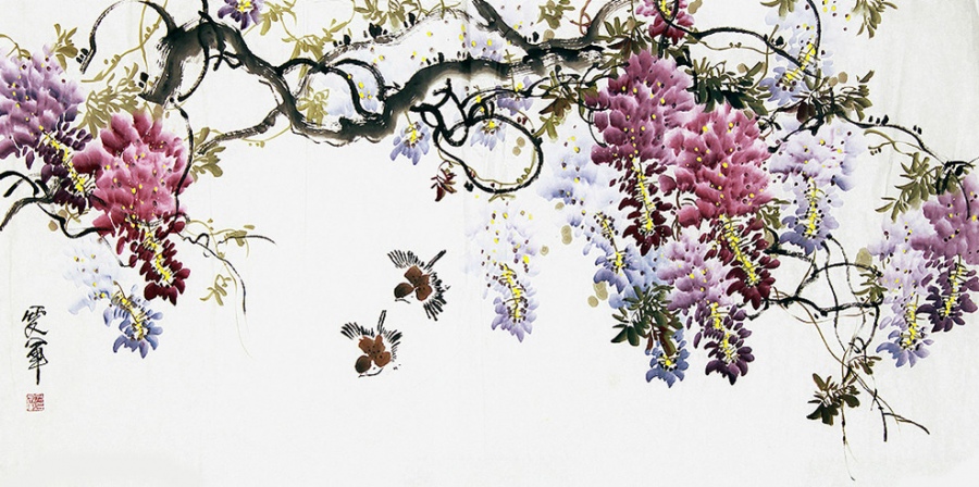 525 子新昌,1957年生于武汉,毕业于湖北美术学院,现为中国美协湖北分会理事,国家一级美术师。张虎军先生的花鸟画作品近年来频频在国内外展出获奖,他的画意境深远,设色淡雅,平和安详,融入一种深厚的书卷博雅之境。作品分别被钓鱼台国宾馆,人民大会堂,中央电视台,荣宝斋画院,等国内外专业美术机构收藏