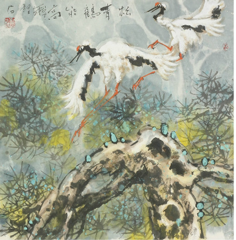 出版社出版。此后,他陆续创作了20多幅年画,分别由北京人民美术出版社、天津杨柳青画社、体育出版社等出版。1984年,郑坚石调廊坊市群艺馆,开始国画创作。他选择花鸟画为突破口,喜画仙鹤。他笔下的仙鹤,就像一群白色的精灵,在沼泽、在溪流,自由自在地飞翔。在表现仙鹤时,郑坚石自己在精神上得到了最大的快慰。国画《双龙戏珠》获“第七届全国美展”铜奖。国画《美的使者》入选“第七届全国美展”。国画《红花·绿叶·黄土窑》入选“全国第二届水粉画展”。国画《花韵》