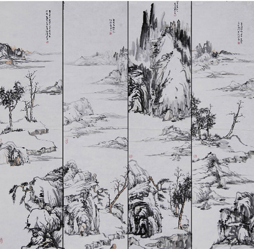 李社- 拟倪瓒山水(四屏)